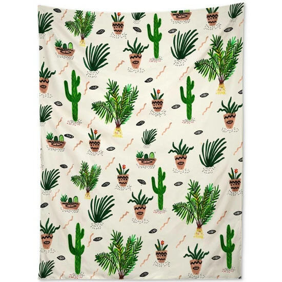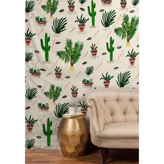 Air a refreshing southwest-inspired mood in your space with the desert botanical motifs and crisp tones of this soft Kris Tate Plants Are My Friends Tapestry by Deny Designs.