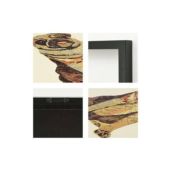 - Product techniques – hand-cut paper art collage print signed by Alex Zeng under tempered glass in black wood frame, backed with 2 saw tooth hangers for wall mounting
