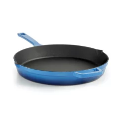 - Cast iron exterior heats slowly and evenly; great for making pot roasts and stews