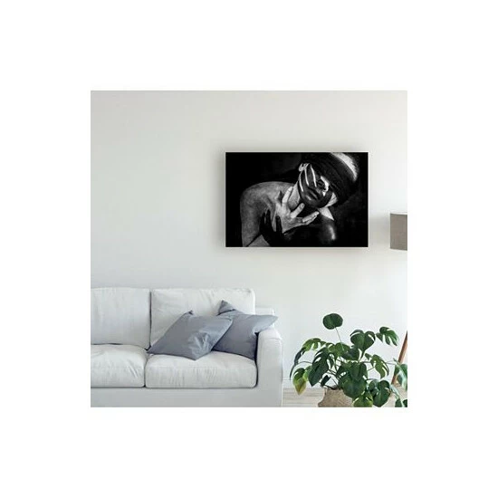 This ready to hang, gallery-wrapped art piece features a woman with face paint and a blindfold on. Gallery-wrap is a method of wrapping an artist’s canvas around a hidden, wooden frame allowing for a frameless presentation.