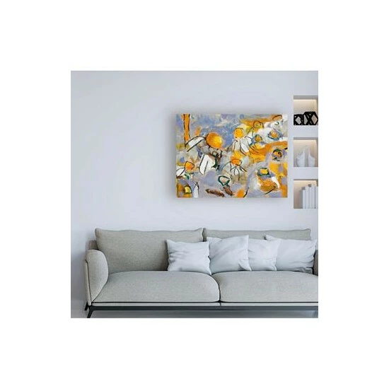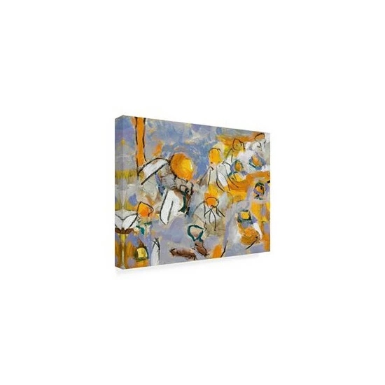 This ready to hang, gallery-wrapped art piece features an abstract of a field of white and yellow daisies. Gallery-wrap is a method of wrapping an artist’s canvas around a hidden, wooden frame allowing for a frameless presentation.